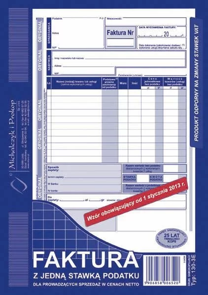 Faktura z jedną stawką podatku dla prowadzących sprzedaż w cenach netto marki MiP