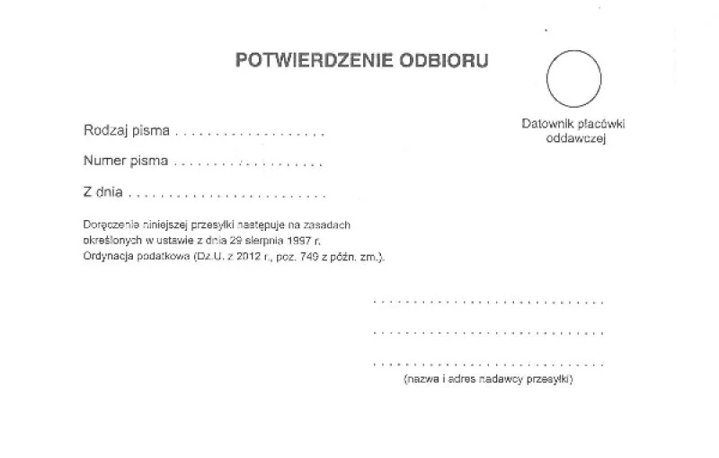Zwrotne Potwierdzenie Odbioru 1-Taśma Ordynacja Podatkowa A'100szt.
