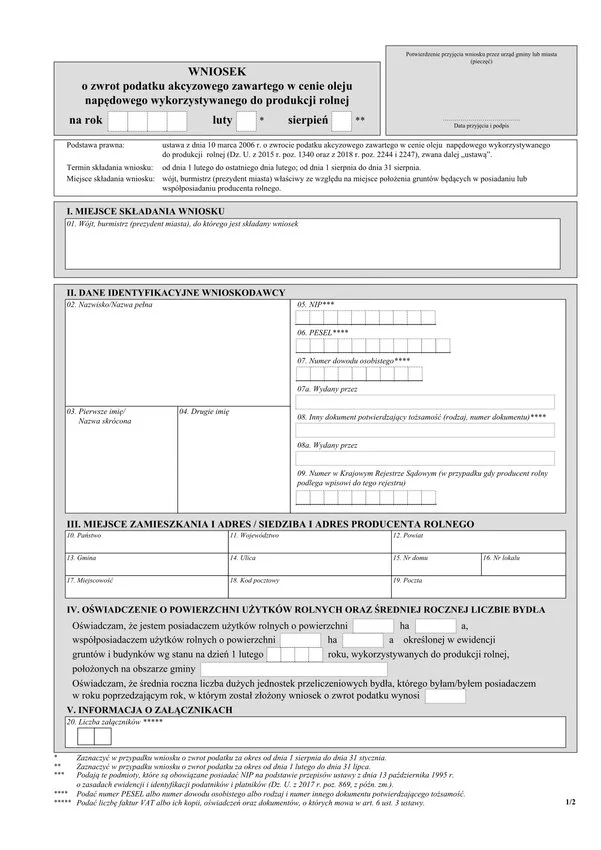 Wniosek o Zwrot Podatu Akcyzowego Zawartego w Cenie Oleju Napędowego A4 A'100szt. /Graf