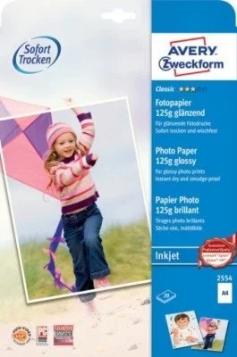 Papier Fotograficzny Powlekany 125g 20szt. Avery 210x297 Biały Wyskołyszczący No.2554