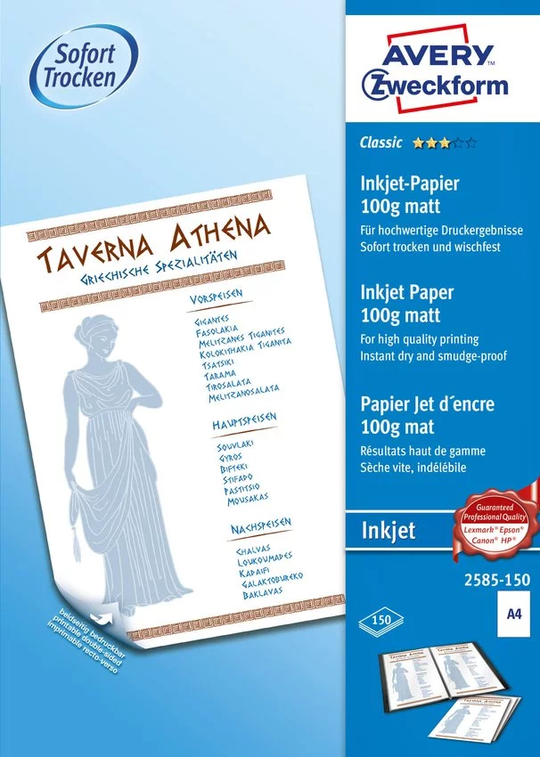 Papier Fotograficzny Obustronnie Powlekany A4 100g 150szt. Avery 210x297 Biały Matowy No.2585-150