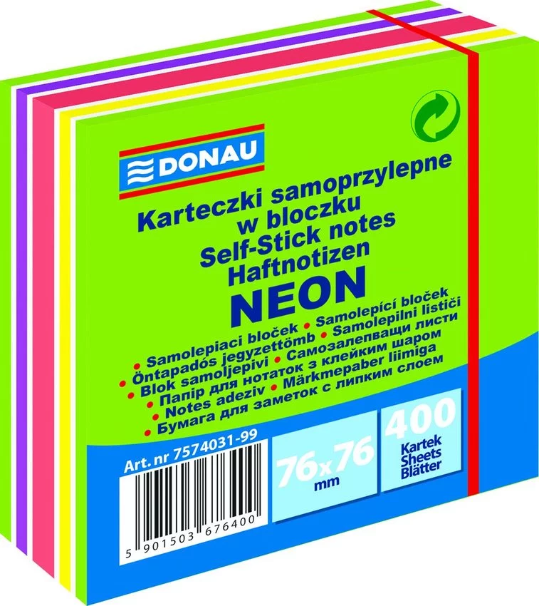 Bloczek Samoprzylepny 76x76 400k 5kol. Neon (zielony) /Donau