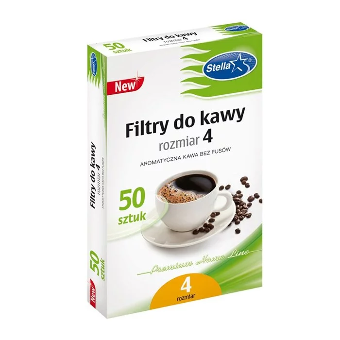 - Filtry do kawy Stella Nr 4 (50 szt.) to niezawodne rozwiązanie dla wszystkich miłośników aromatycznej kawy parzonej tradycyjnie. Dzięki odpowiedniej strukturze papieru, filtr skutecznie oddziela fusy od naparu, pozwalając cieszyć się czystym i pełnym smak