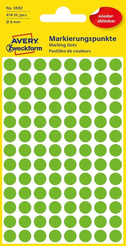 Kółka Do Zaznaczania Avery Śr.8mm 4/A4 A'104 Zielone No.3592