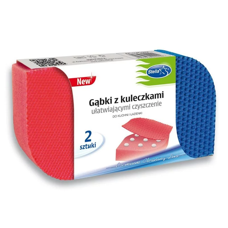 - Niebieska gąbka z siateczką o większych oczkach dokładnie czyści wszelkie powierzchnie kuchenne jak blaty, kuchenki, zlewozmywaki, a także garnki i naczynia.