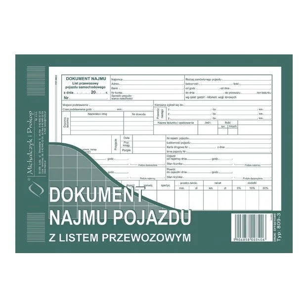Dokument Najmu Pojazdu Z Listem Przewozowym A5 40k marki MiP