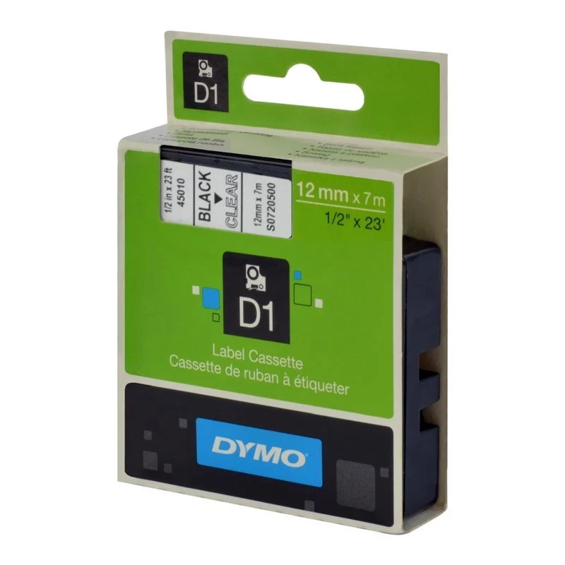 Taśma Dymo D1 - 12 mm x 7 m, Czarny / Przezroczysty