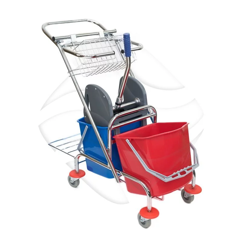- Wózek dwuwiaderkowy na kółkach z koszykiem i uchwytem