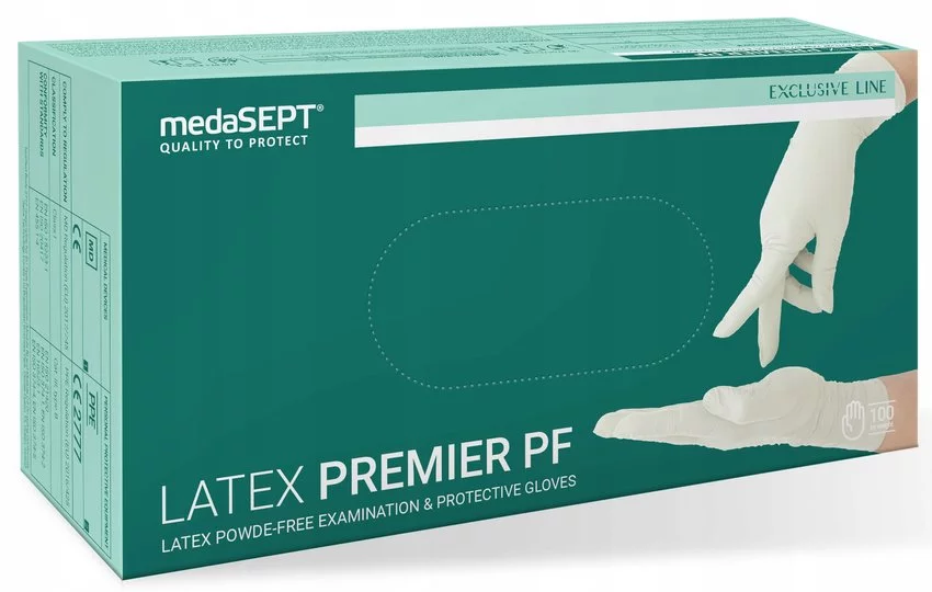 - Rękawice lateksowe bezpudrowe, diagnostyczne i ochronne.