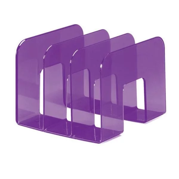 Model wyposażony jest w trzy oddzielne przegródki, które umożliwiają segregację katalogów, broszur czy korespondencji. Transparentny, purpurowy odcień nie tylko przyciąga wzrok, ale także ułatwia szybkie zlokalizowanie potrzebnych materiałów.