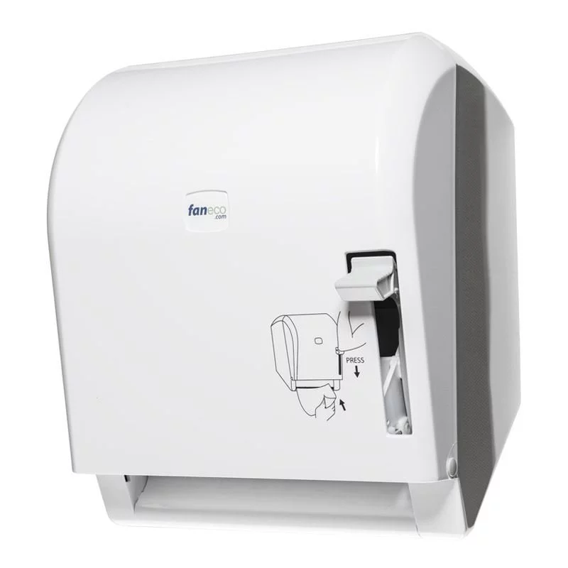 Model POP, marki Faneco został wykonany z wytrzymałego plastiku ABS. Jest przeznaczony do montażu na ścianie i posiada praktyczne zamknięcie na kluczyk. Dozowanie ręczników następuje poprzez naciśnięcie dźwigni, za pomocą dłoni, bądź łokcia. Taka opcja, zwiększa higieniczność korzystania z dozownika. Dodatkowo, umożliwia to kontrolowanie ilości zużywania papieru - gwarantuje ekonomiczne dozowanie.