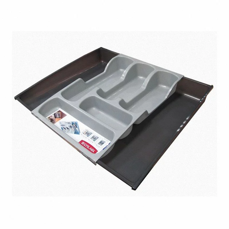Wkład na sztućce z możliwością zmiany jego wielkości pasuje do większości szuflad w kuchni. Wystarczy rozsunąć obie części pojemnika, aby uzyskać pożądaną wielkość. Wkład chroni wnętrze szuflady przed zarysowaniami. Solidnie wykonany pojemnik będzie służył przez wiele lat.