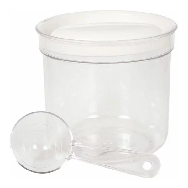 - Pojemnik Basic 1,7L to funkcjonalny i trwały pojemnik na artykuły sypkie, wyposażony w praktyczną miarkę i wykonany z bezpiecznego, transparentnego tworzywa.