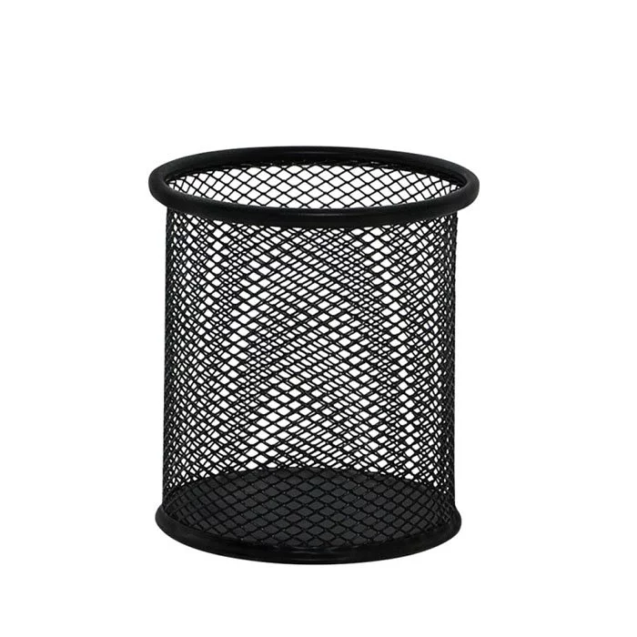 Pojemnik na długopisy wykonany z metalowej siateczki.Kształt okrągły.Kolor czarny.Świetnie nadaję się na biurko,szafkę,stolik.Dzięki niemu możemy mieć w jednym miejscu wszystkie potrzebne nam przyrządy kreślarskie na wyciągnięcie ręki.