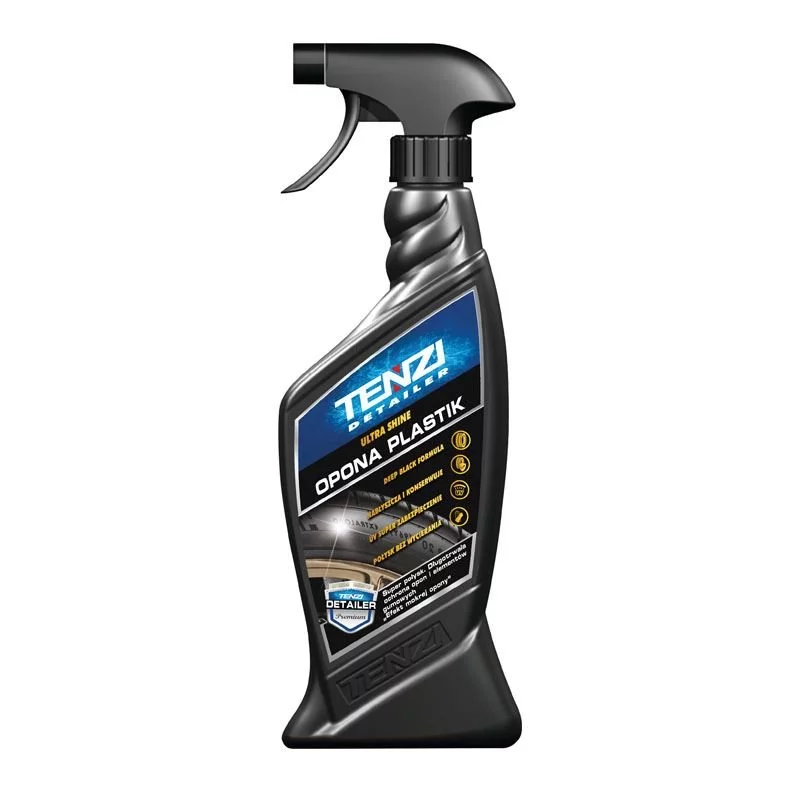 Pielęgnacja i regeneracja opon oraz plastików samochodowych nigdy nie była tak prosta i przyjemna. Nowy preparat marki Tenzi Detailer nabłyszcza i konserwuje opony oraz elementy plastikowe a także zabezpiecza je przed szkodliwym dziłaniem promieniowania UV. Specyfik działa także jako "czernidło" pogłębiając ciemny kolor elementów na których jest stosowany. Dzięki zastosowaniu formuły Ultra Shine tworzy on efekt tzw."mokrej opony". Tenzi Opona i Plastik chroni także gumę przed pękaniem i kruszeniem.