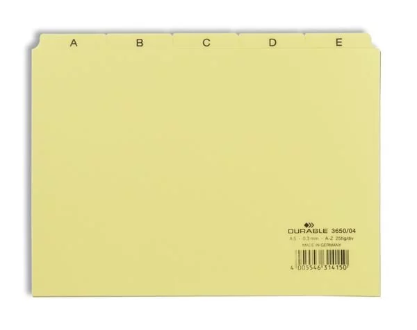 Przekładki do Kartotek A-Z 5/5 PCW 0,3mm Indeksy 40mm Poziome A5 25cz. Żółte /Durable 365004