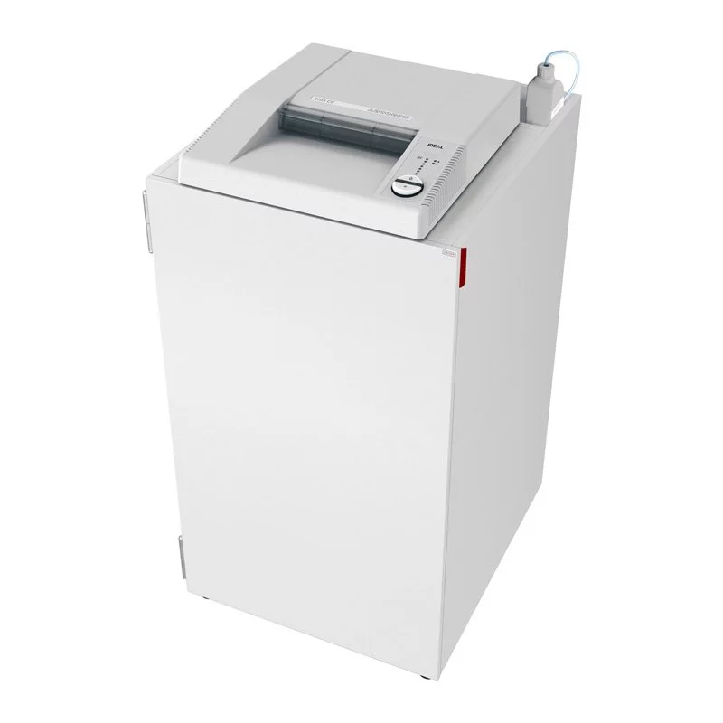 IDEAL 3105 JUMBO z automatyczną smarownicą to bardzo wydajna niszczarka dokumentów biurowych z przełącznikiem EASY-SWITCH zapewniającym intuicyjną obsługę. Specjalną cechą IDEAL 3105 JUMBO jest wyjątkowo duża pojemność. „Niebieski pojemnik” o pojemności około 240 litrów służy jako pojemnik na śmieci . Automatyczny wtrysk oleju bezpośrednio na wałki noża zapewnia niezmiennie wysoką wydajność cięcia. IDEAL 3105 niszczy twoje dane podczas cięcia cząstek 4x40 mm i tym samym spełnia poziom bezpieczeństwa P-4 (DIN 66399). Mocny silnik o mocy 1600 W nadaje się do ciągłej pracy. Solidne i zamknięte koło zębate z napędem łańcuchowym zapewnia optymalne przeniesienie mocy. Wałki nożowe wysokiej jakości, odporne na spinacze do papieru, wykonane z hartowanej stali specjalnej z gwarancją LIFETIME.