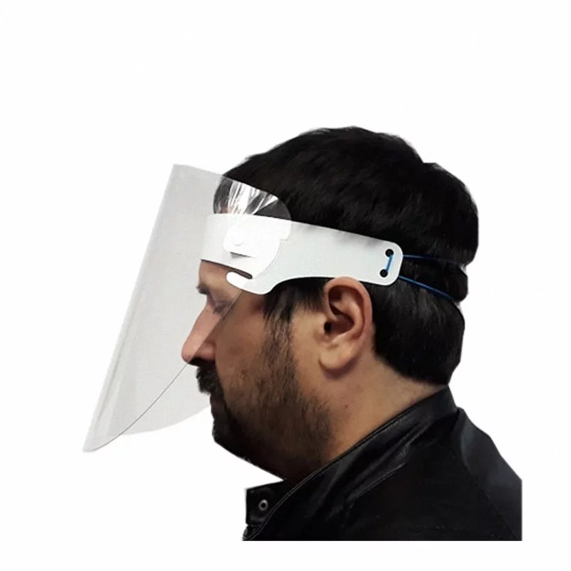 Profesjonalne przyłbice otwierane. Wykonane z tworzywa PET, cechuje je wysoka przeźroczystość. Skonstruowane tak, żeby można było w nich wygodnie pracować, bez ucisku na głowę posiadają regulację. Zapewniają doskonałą ochronę oczu, ust i nosa. Wyprodukowane w Polsce.