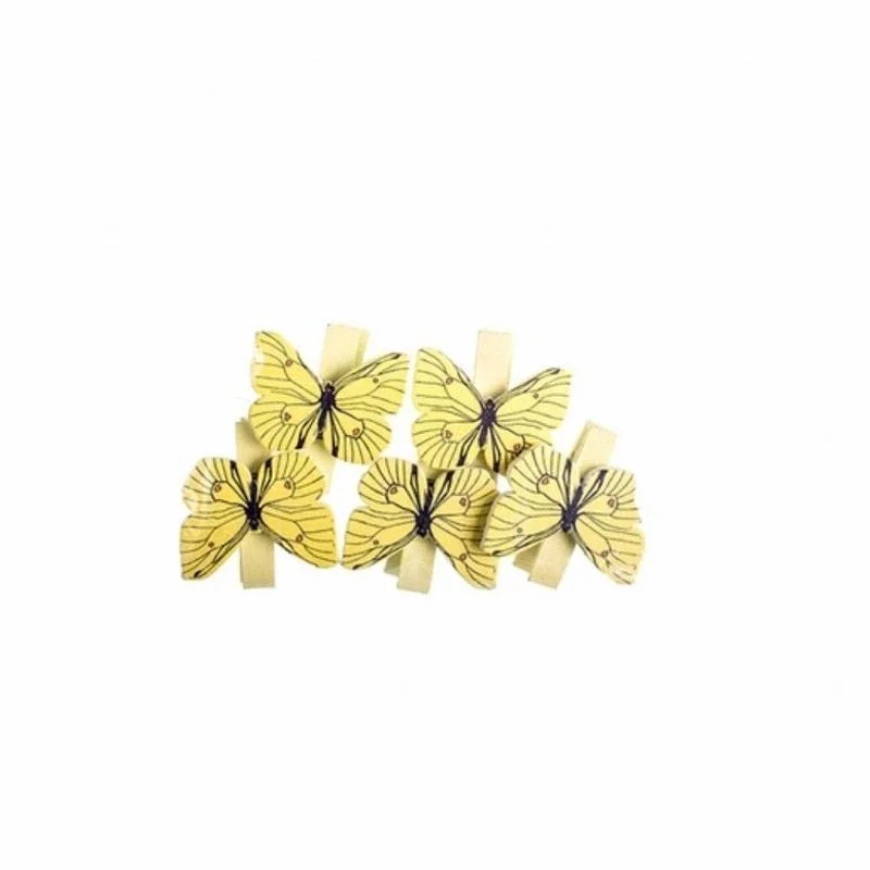 Drewniane mini klamerki z motywem motylków. Świetnie nadają się do zdobienia projektów kreatywnych takich jak kartki okolicznościowe, albumy, pudełka, opakowania prezentów itp., jak również do wszelkiego rodzaju dziecięcej aktywności twórczej.