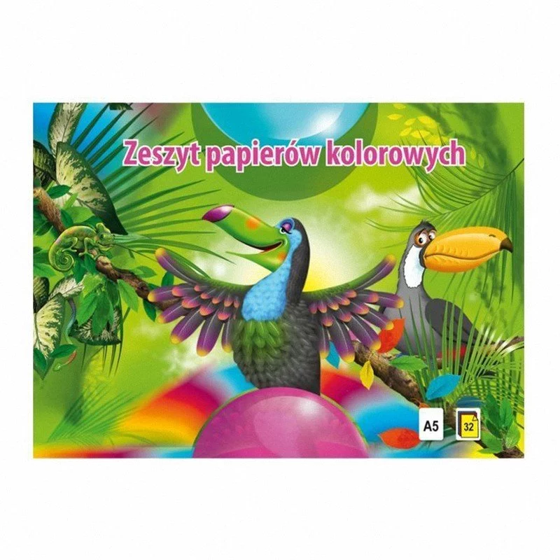Zeszyt papierów kolorowych o bogatej palecie 32 barw w formacie A4. Papier kredowany, połyskujący powlekany obustronnie o gramaturze 80g/m2. Pełna kolorów i przyjazna dzieciom kartonowa okładka dodatkowo nabłyszczana.