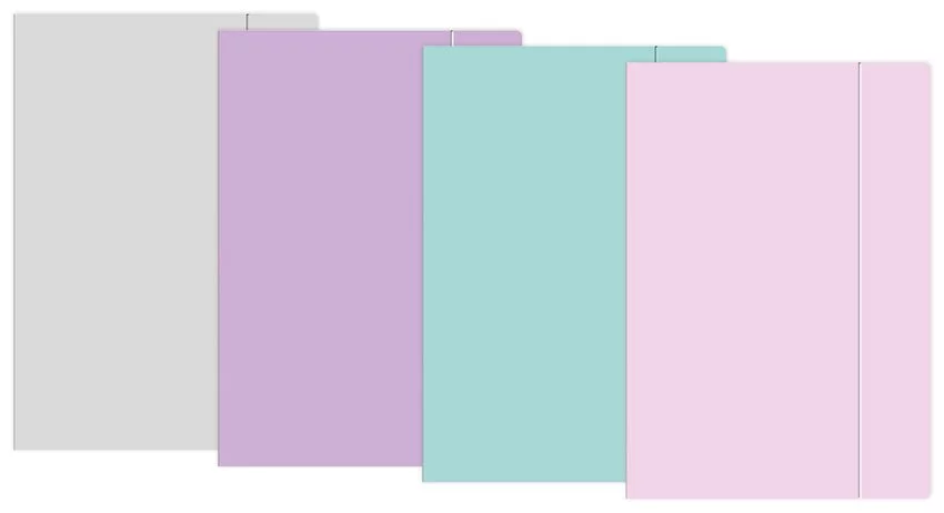 Format: A4+. Teczka dostępna w 4 pastelowych kolorach. Zamykana na gumkę w kolorze teczki. Doskonale chroni dokumenty. Wykonana z wysokiej jakości kartonu o gramaturze 300 g.
