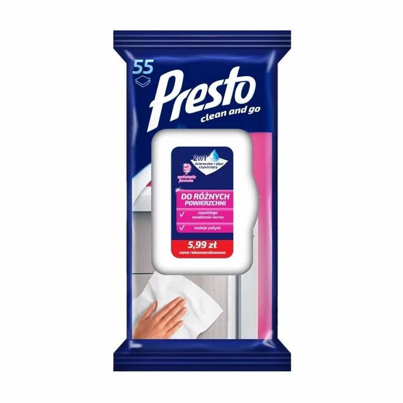 Ściereczki Nasączane Presto 55szt. do Różnych Powierzchni