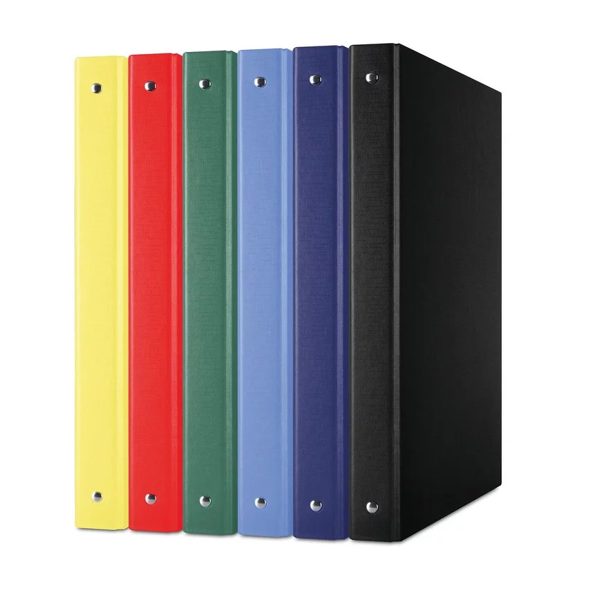 wykonany z tektury o grubości 1,9mm i gramaturze 1170gsmpokryty ekologiczną folią polipropylenową o (100µm) strukturze płótna wewnątrz biała wyklejka papierowa 4-pierścieniowy mechanizm w kształcie litery O średnica pierścieni: 20mm szerokość grzbietu: 35mm, wymiary: 35x320x265mm 2 lata gwarancji na mechanizm mix kolorów