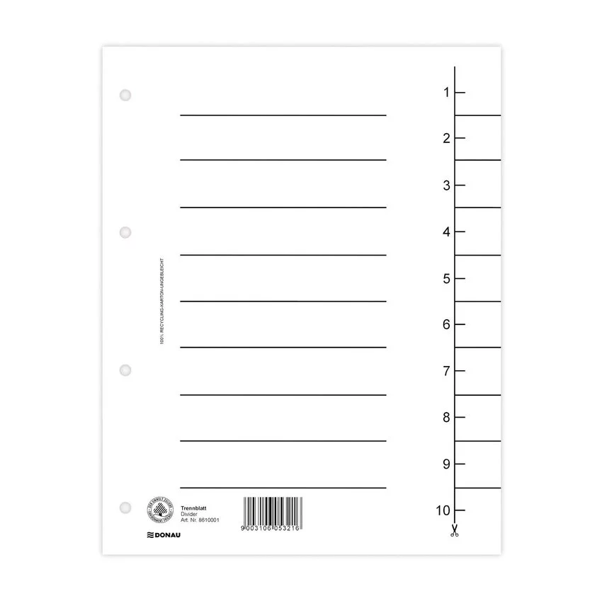 Przekładka Donau Karton A4 235X300mm 1-10 1 Karta Biała
