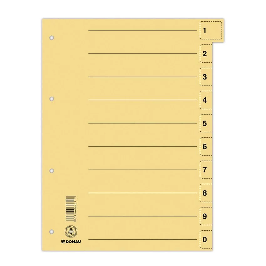 Przekładka Donau Karton A4 235X300mm 0-9 1 Karta Z Perforacją Żółta
