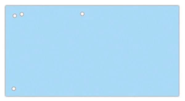 wykonane z kartonu o gramaturze 190gsmdo wpinania w pionie oraz w poziomie dziurkowanie: 4 (dziurki w odstępie 80mm) rozmiar przekładki: 240x105mm 100 sztuk w j.s. każdy komplet osobno pakowany w folię kolor: niebieski