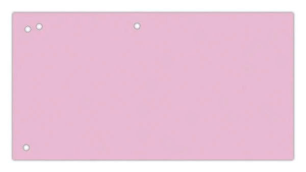 wykonane z kartonu o gramaturze 190gsmdo wpinania w pionie oraz w poziomie dziurkowanie: 4 (dziurki w odstępie 80mm) rozmiar przekładki: 240x105mm 100 sztuk w j.s. każdy komplet osobno pakowany w folię kolor: różowe