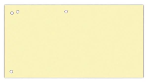 wykonane z kartonu o gramaturze 190gsmdo wpinania w pionie oraz w poziomie dziurkowanie: 4 (dziurki w odstępie 80mm) rozmiar przekładki: 240x105mm 100 sztuk w j.s. każdy komplet osobno pakowany w folię kolor: żółty