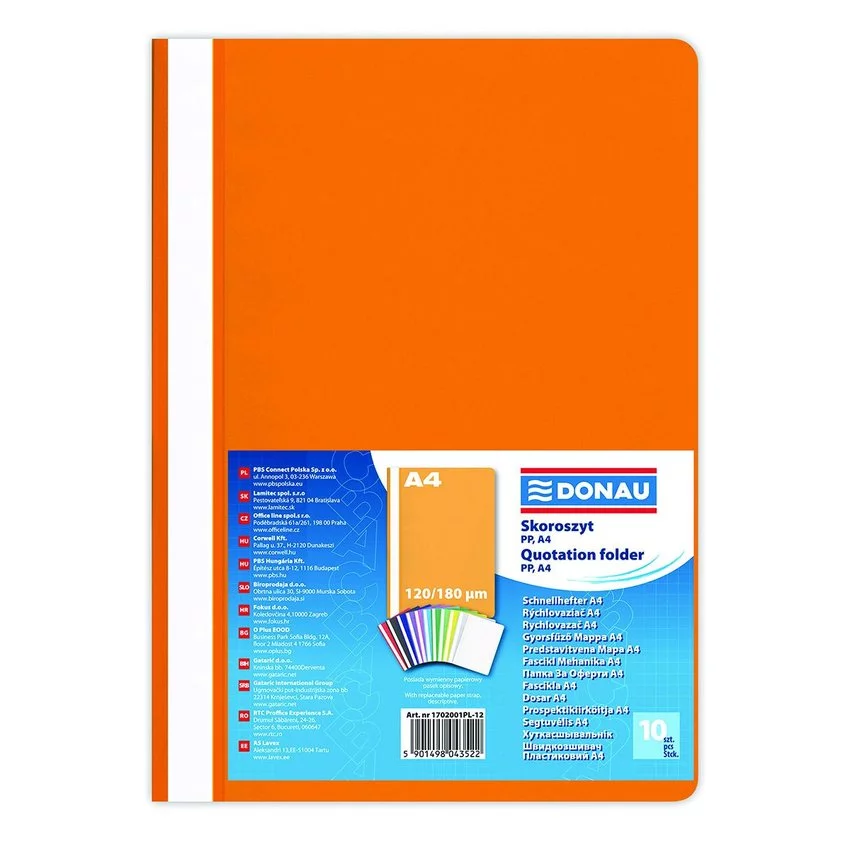 Skoroszyt Donau PP A4 Standard 120/180 mikr. Pomarańczowy