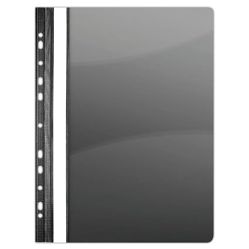 wykonany z PVC, twardystrona przednia transparentna - grubość: 150µm; tylna kolorowa: 160µm mieści ok. 200 kartek posiada 11 dziurek do wpięcia do segregatora wymienny, dwustronnie zapisywalny pasek brzegowy format: A4 rozmiar: 235x310mm kod kreskowy na każdej sztuce kolor czarny
