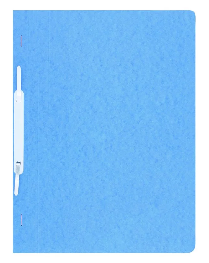 wykonany z preszpanu powlekanego woskiem, twardygrubość 0,5mm gramatura 390gsm niewpinany mieści ok. 200 kartek format: A4 rozmiar: 230x315mm kolor niebieski