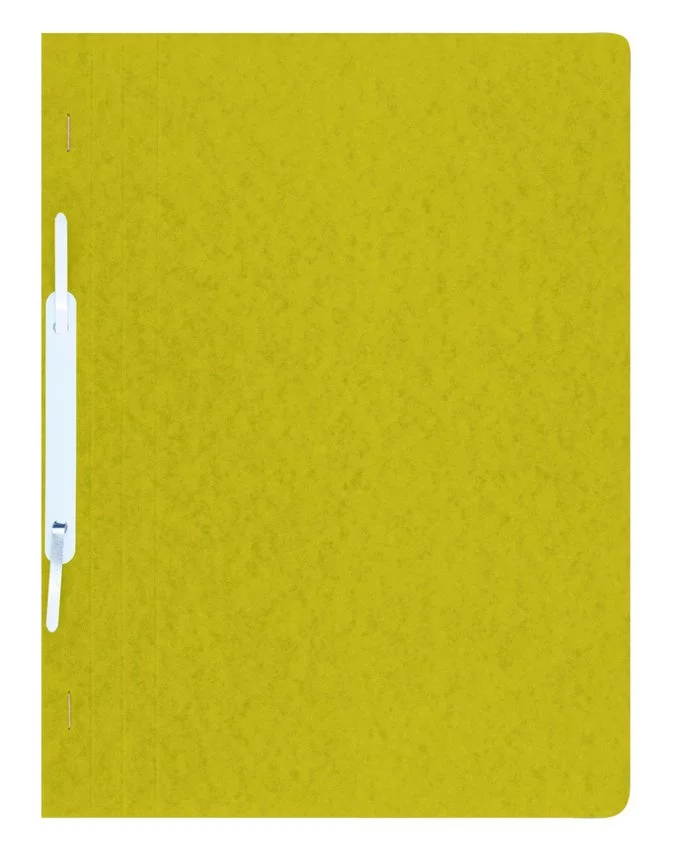 wykonany z preszpanu powlekanego woskiem, twardygrubość 0,5mm gramatura 390gsm niewpinany mieści ok. 200 kartek format: A4 rozmiar: 230x315mm kolor żółty