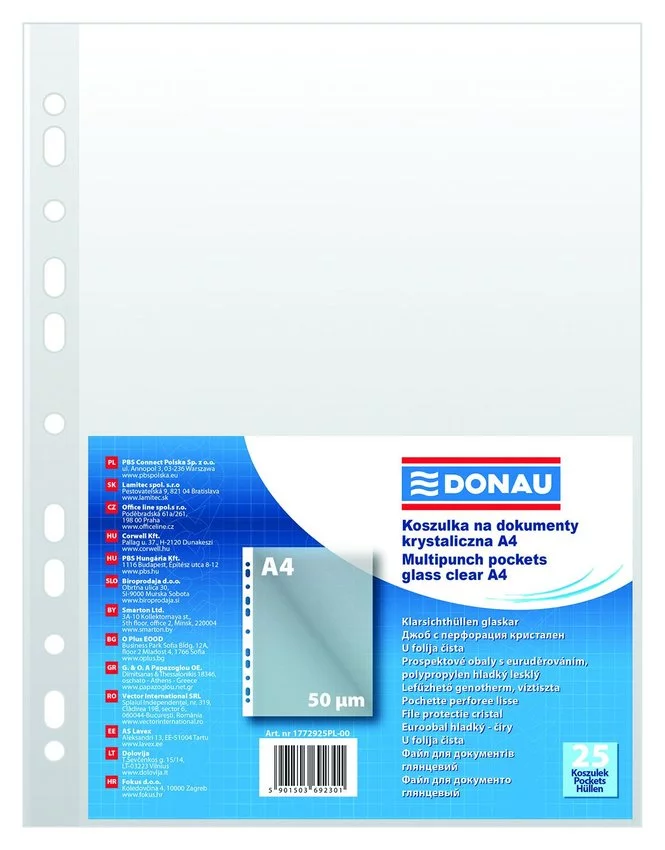 Koszulki Na Dokumenty Donau PP A4 Krystal 50 mikr. 25Szt.
