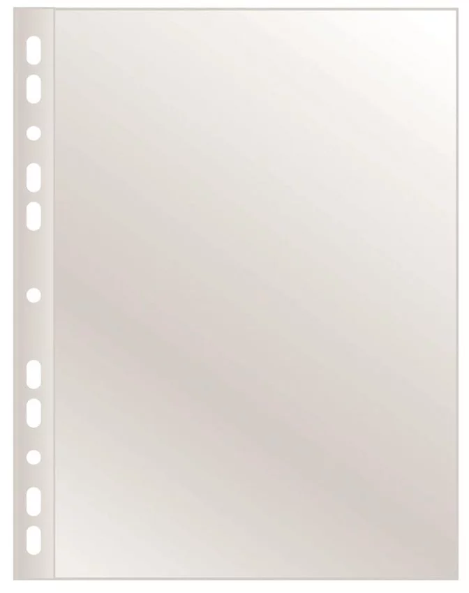 wykonane z gładkiej, ekologicznej folii polipropylenowej o grubości 120µmspecjalnie wzmocniony brzeg krystaliczne, transparentne otwarte na górze antyelektrostatyczne ilość dziurek do wpięcia: 11 rozmiar: 230x305 100 sztuk w j.s. (w pudełku) kolor transparentny