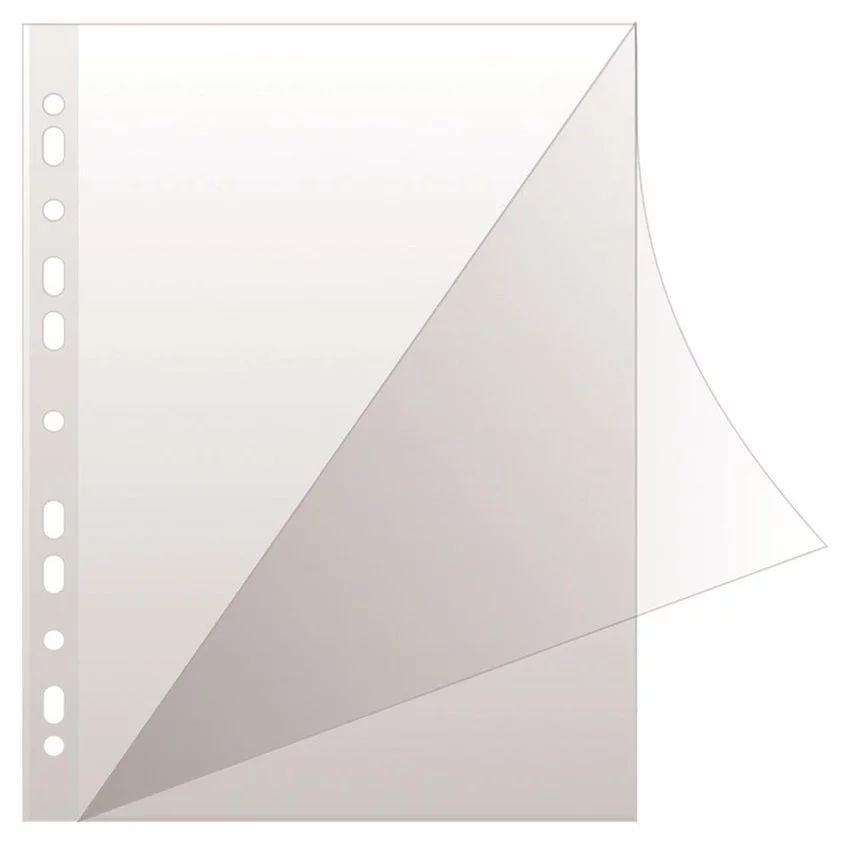 koszulki wykonane z grubej ekologicznej folii polipropylenowej (100 µm)krystaliczne, przeźroczyste otwarta z góry i po długim boku - typ "L" przeznaczone na dokumenty w formacie A4 ilość dziurek do wpięcia: 11 rozmiar: 230x305mm 100 sztuk w j.s. kolor: transparentny