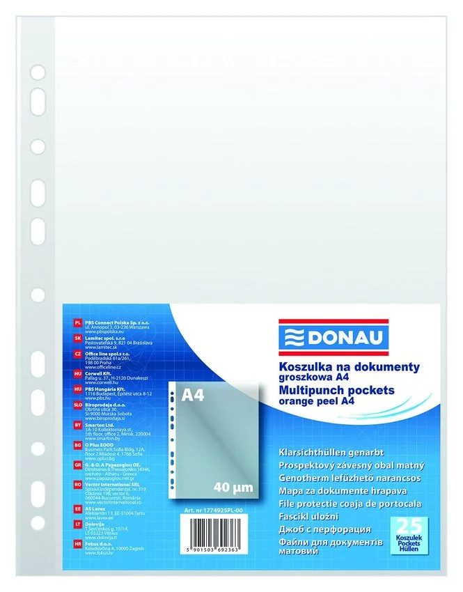Koszulki Na Dokumenty Donau PP A4 Groszkowe 40 mikr. 25Szt.