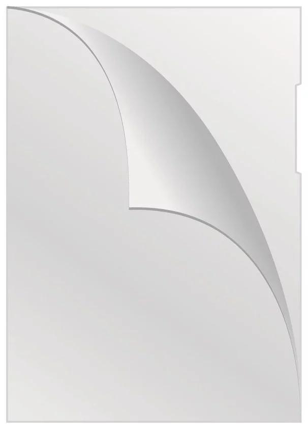 wykonana z folii polipropylenowej o grubości 160µmkrystaliczna, transparentna w kształcie litery "L" - rozcięcie na górze oraz wzdłuż brzegu z zaokrąglonym górnym narożnikiem rozmiar: 217x307mm 100 sztuk w j.s. kolor transparentny