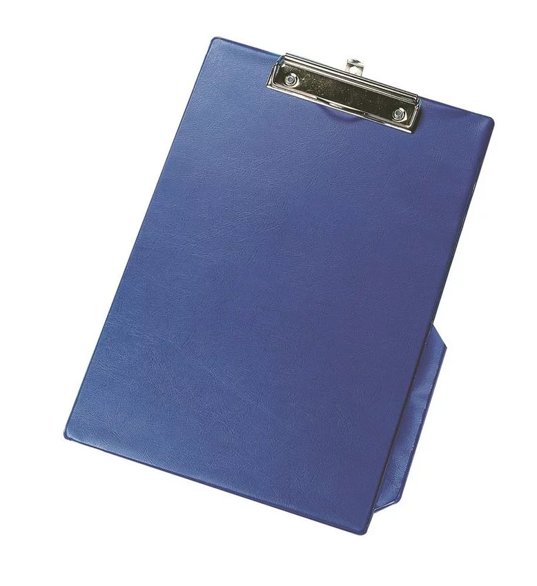 podkładka do pisania bez okładki, wykonana z tektury o grubości ok. 2mmpokryta wysokiej jakości PVC zacisk sprężynowy posiada metalowy zacisk spinający do 50 kartek o gramaturze 70gsm na dłuższym boku znajduje się kieszonka na długopis lub ołówek możliwość zawieszenia podkładki za pomocą specjalnego oczka umieszczonego w zacisku format: A4 rozmiar: 230x350mm kolor niebieski