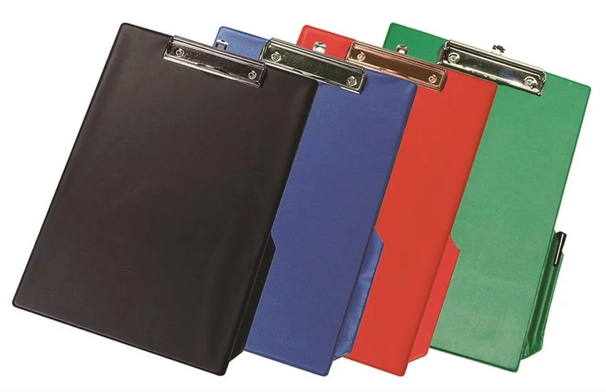 podkładka do pisania bez okładki, wykonana z tektury o grubości ok. 2mmpokryta wysokiej jakości PVC zacisk sprężynowy posiada metalowy zacisk spinający do 50 kartek o gramaturze 70gsm na dłuższym boku znajduje się kieszonka na długopis lub ołówek możliwość zawieszenia podkładki za pomocą specjalnego oczka umieszczonego w zacisku format: A4 rozmiar: 230x350mm mix kolorów