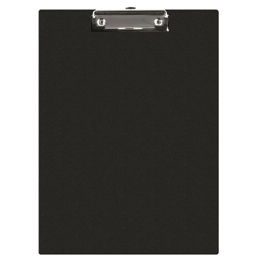 podkładka do pisania bez okładki, wykonana z tektury o grubości ok. 2mmpokryta wysokiej jakości PVC zacisk sprężynowy posiada metalowy zacisk spinający do 50 arkuszy o gramaturze 70gsm na dłuższym boku znajduje się kieszonka na długopis lub ołówek możliwość zawieszenia podkładki za pomocą specjalnego oczka umieszczonego w zacisku format: A5 rozmiar: 170x240mm kolor czarny
