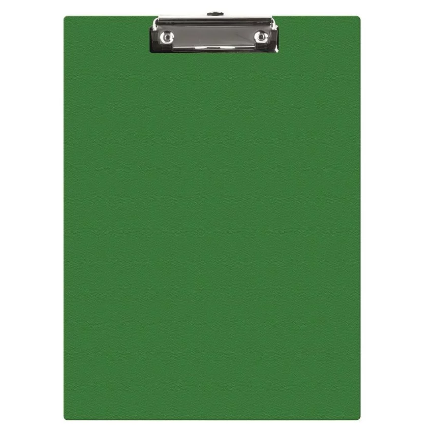 podkładka do pisania bez okładki, wykonana z tektury o grubości ok. 2mmpokryta wysokiej jakości PVC zacisk sprężynowy posiada metalowy zacisk spinający do 50 arkuszy o gramaturze 70gsm na dłuższym boku znajduje się kieszonka na długopis lub ołówek możliwość zawieszenia podkładki za pomocą specjalnego oczka umieszczonego w zacisku format: A5 rozmiar: 170x240mm kolor zielony