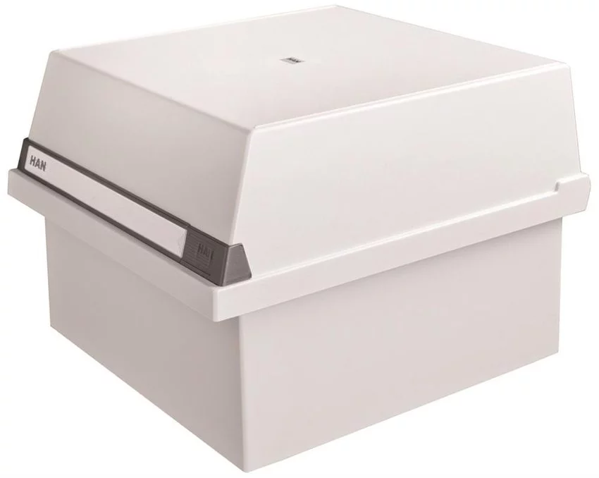 idealny sposób na segregowanie danych na kartach A4karty umieszczane poziomo zamykana wiekiem, na froncie - specjalna, wysuwana listwa z etykietą opisową specjalna, wysuwana listwa z etykietą opisową istnieje możliwość włożenia podstawy kartoteki w wieko, aby zaoszczędzić zajmowane miejsce wyposażona w dwie polistyrenowe przekładki z plastikowymi, przesuwanymi indeksami i etykietkami gumowe nóżki chronią blat biurka przed zarysowaniem oraz zapobiegają przemieszczaniu się kartoteki zamknięte kartoteki mogą być ustawiane jedna na drugiej pojemność: ok. 1300 kart wymiary: 365x330x242mm kolor szary