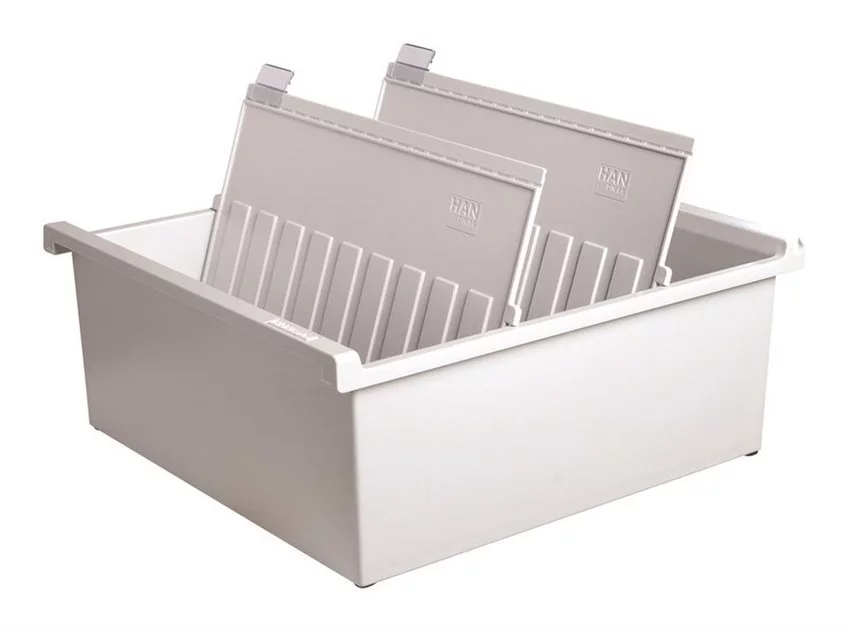 idealny sposób na segregowanie danych na kartach A4karty umieszczane poziomo wyposażona w dwie polistyrenowe przekładki z plastikowymi, przesuwanymi indeksami i etykietkami gumowe nóżki chronią blat biurka przed zarysowaniem oraz zapobiegają przemieszczaniu się kartoteki pojemność: ok. 1300 kart wymiary: 325x140x347mm kolor szary