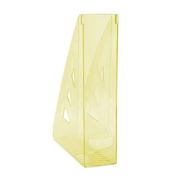 ażurowy pojemnik na dokumentywykonany z twardego plastiku odporny na pęknięcia sztywna konstrukcja o zwiększonej stabilności ścięte boki ułatwiają wkładanie i wyjmowanie dokumentów kolor: transparentny żółty