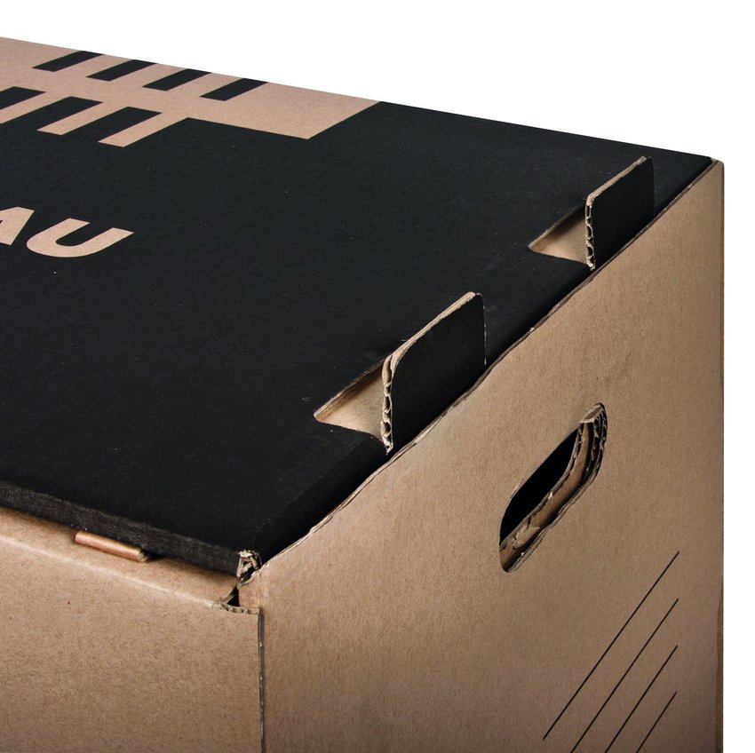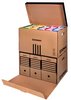 wykonane z trójwarstwowej tektury falistej o gramaturze 450gsmprodukt bezkwasowy, wskaźnik pH ok. 7,5 typ fali: C mieści np. 6 pudełek 80mm lub 5 pudełek 100mm lub 4 pudełka 120mm lub 2 pudełka 155mm+1 pudełko 200mm lub 2 pudełka 200mm + 1 pudełko 100mm wzmocnione dno i uchwyty pozwalają przenosić nawet najbardziej dociążone segregatorami/pojemnikami pudło zintegrowana klapa otwierana z przodu umożliwia dostęp do dokumentów bez konieczności zdejmowania kompatybilne z pudłem wzmocnionym otwieranym od góry - specjalne otwory w dnie i wypustki w klapie ułatwiają składowanie pudeł składane, proste w montażu posiada certyfikat FSC, który gwarantuje, że papier pochodzi z ekologicznie zarządzanych obszarów leśnych udźwig do 12kg wymiary zewnętrzne: 360x555x315mm kolor brązowy