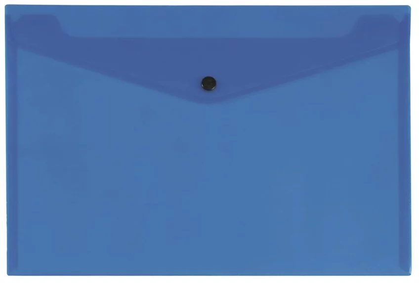 teczka kopertowa, wykonana z polipropylenu o grubości 172µmzamykana na zatrzask format: A4 rozmiar: 234x324mm kolor transparentny niebieski